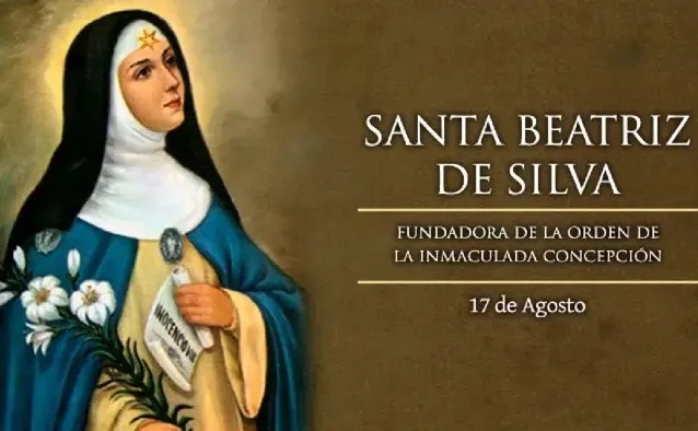 Cada 17 de agosto la Iglesia Católica celebra a Santa Beatriz de Silva, religiosa portuguesa del siglo XV, fundadora de la Orden de la Inmaculada Concepción, conocidas como concepcionistas franciscanas. Beatriz se consagró a la oración contemplativa y a difundir la devoción a María Inmaculada.